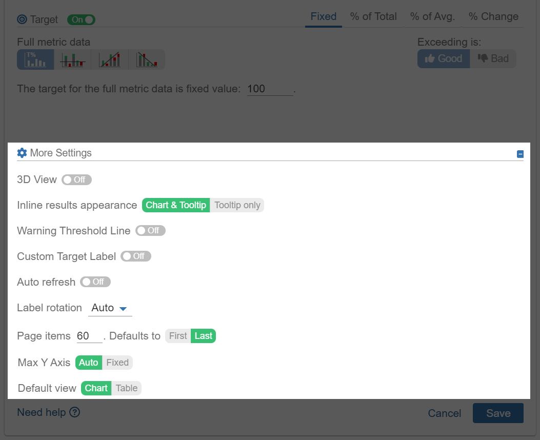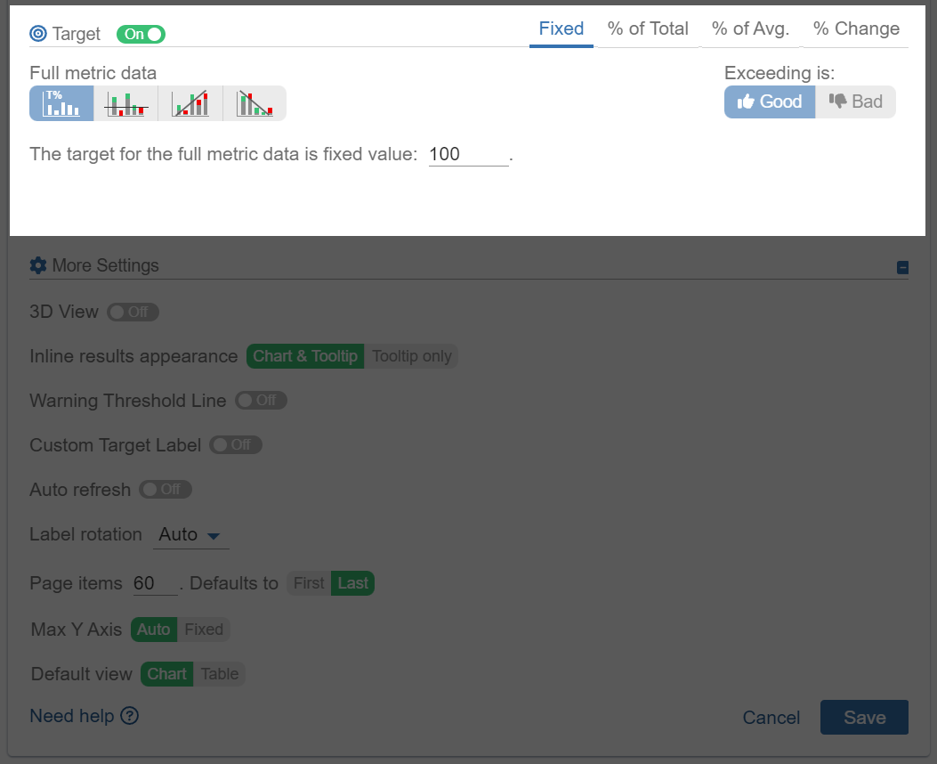 Additionally, you have the ability to customize whether exceeding the defined target is considered Good or Bad.