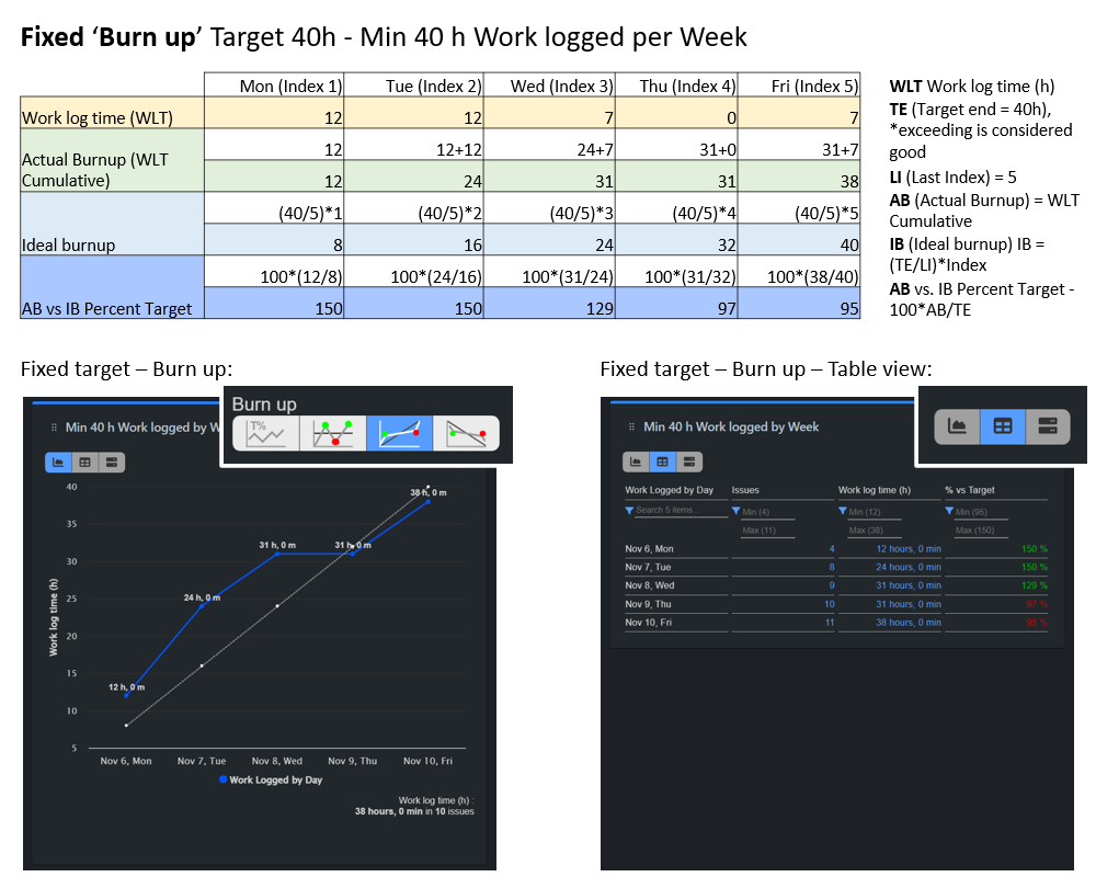 Below, we have provided simple examples illustrating how the calculations for individual target types are performed. Choose the most suitable one for your specific Jira KPIs: